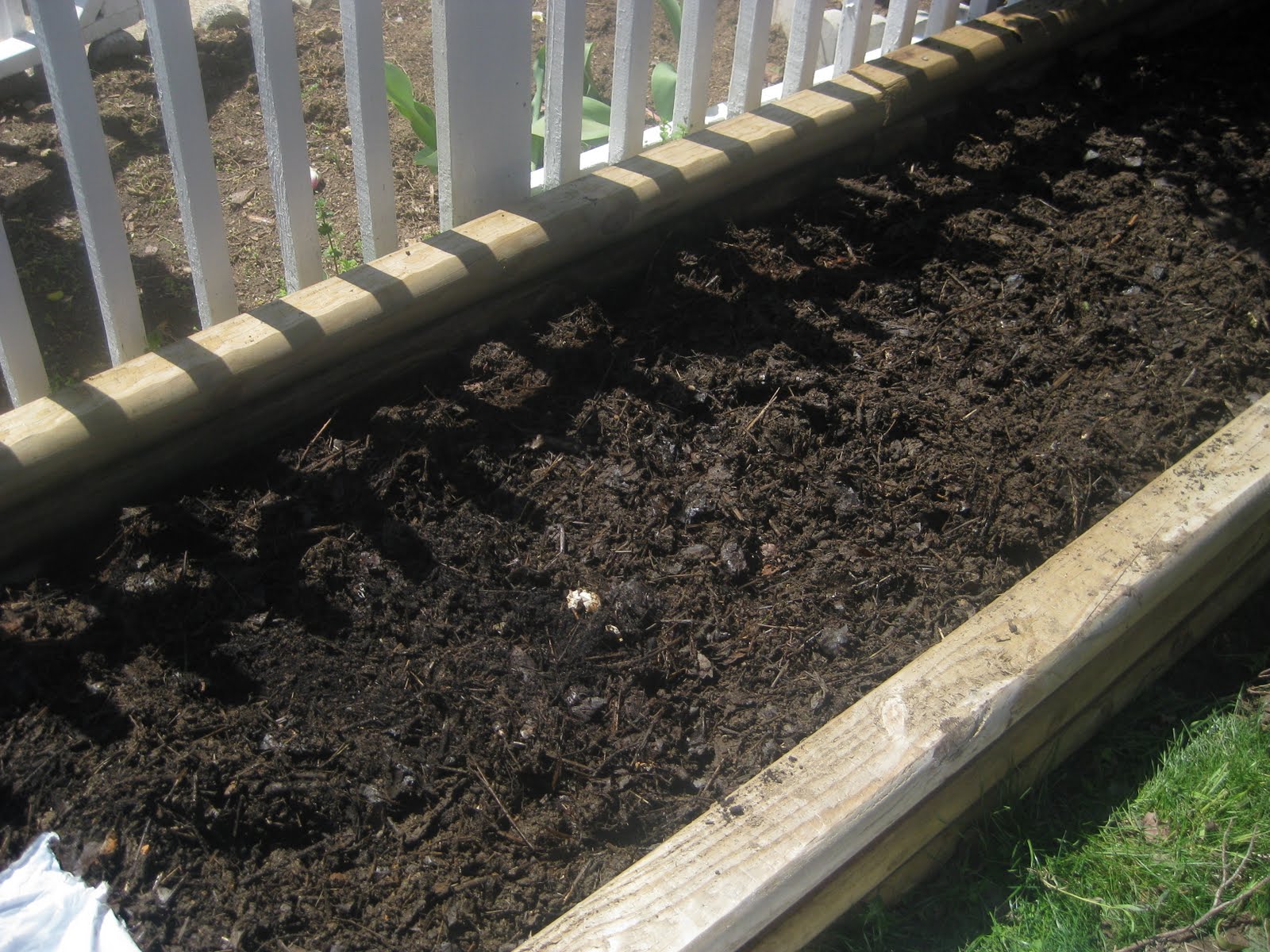About a month ago a friend came to help me get and haul forty pound bags of top soil to fill my raised bed. He helped me layer the soil with compost and peat moss to make this beautiful garden. We also used some of the compost from my bin and turned the rest. Thanks Steve! While we were working in my garden, my neighbor inquired about what I was planting and when I told him vegetables, he offered to share some seeds a friend had given him, so I started my 2nd round of seedlings (basil, thyme, peppers, and rosemary)